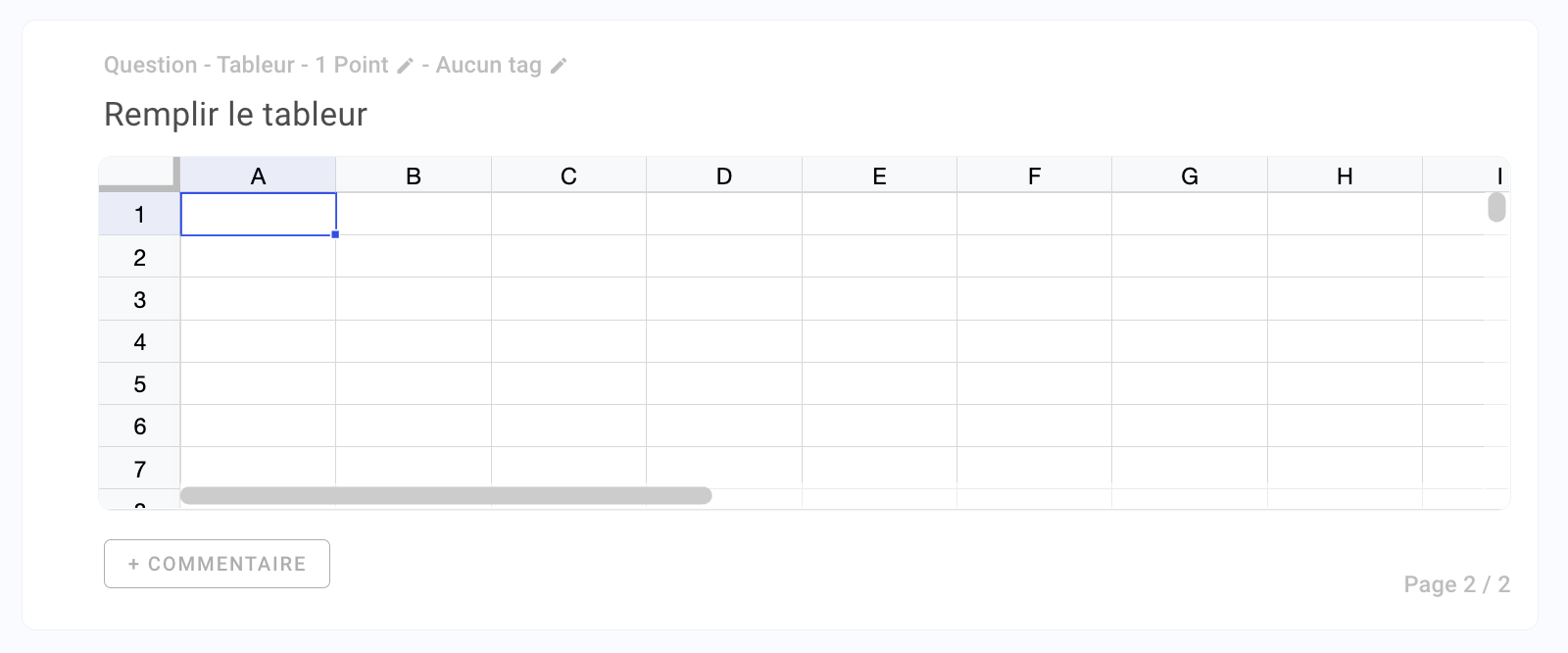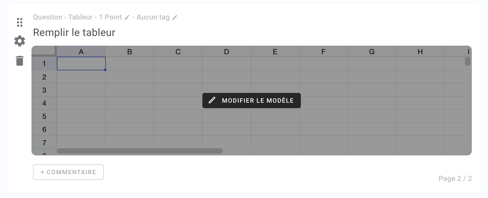 Cliquez sur AJOUTER et choisissez Question Tableur