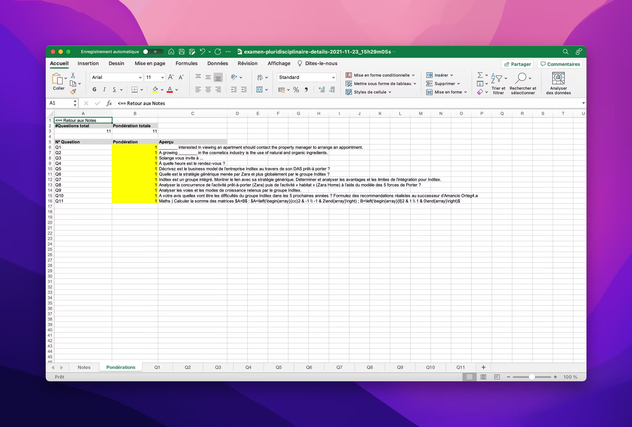 Vous pouvez également modifier une partie du barème de l'examen à partir de l'export excel Notes détaillées une fois que celui-ci est terminé.