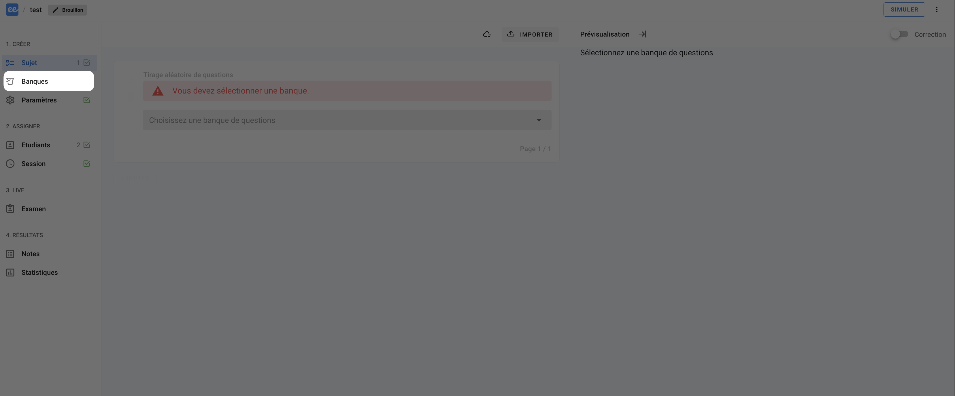 Ajouter / Importer des banques d’exercices