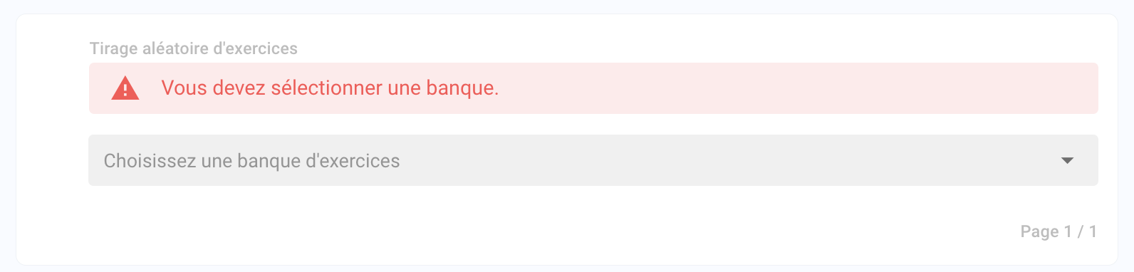 L’exercice aléatoire permet de faire un tirage aléatoire dans un banque pré-définie d’exercices.