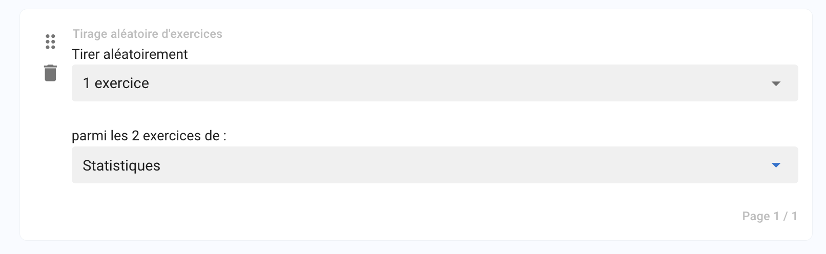 Choisissez ensuite le nombre d’exercices que vous souhaiteriez tirer aléatoire